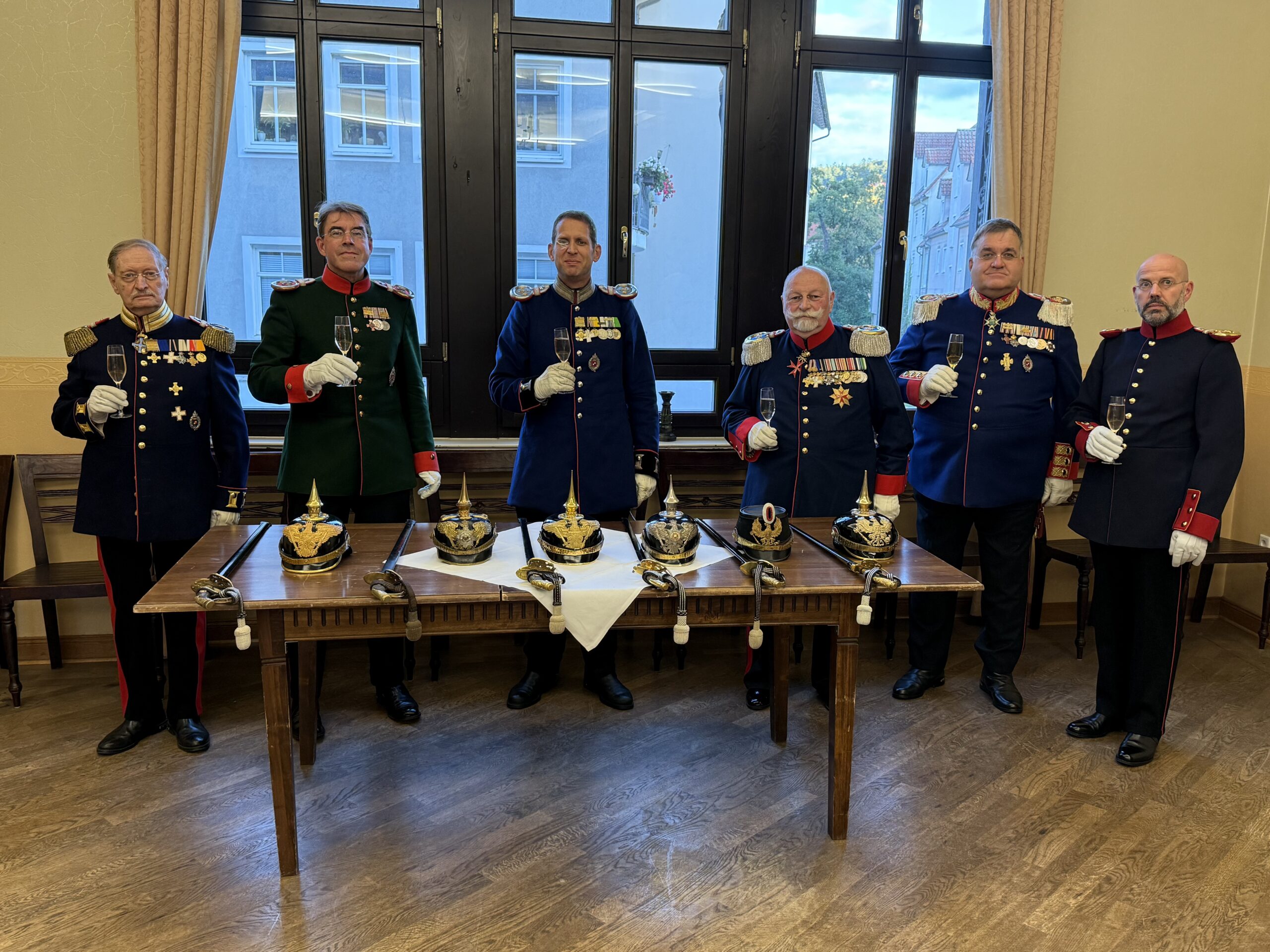 Nachdem bi$ zum frühen Nachmittage die Herren Offiziere glücklich im Quartier angekommen waren, dem „Henneberger Hau$“, wurde zunächst dieser herrliche Fachwerkbau von 1895 au$giebig in Augenschein genommen. Alle zeigten sich höchst zufrieden mit Gastraum, Schulung$saal und auch den Stuben mit ihrer zeitgenössischen Einrichtung und dem Mobiliar. Weitere Teilnehmer wurden im direkt gegenüberliegenden Hotel „Sächsischer Hof“ untergebracht, in dem auch schon der preußische Generalfeldmarschall Helmuth Graf von Moltke nächtigte.